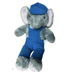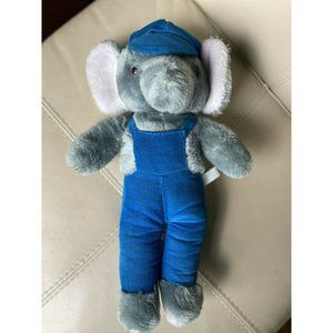 Vtg 70s 80s Plush Toy INTERPUR Elephant / Anteater Corduroy Overalls Korea