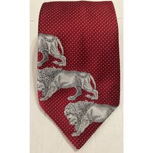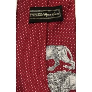 Vtg 70s Allesandro Mens Tie Lions Head Red Microdot Polyester 4.5” Wide Necktie