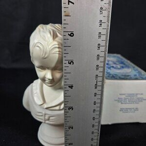 This vintage figurine captures the essence of 18th-century artistry with a classic young boy bust design. Made by Avon, it exudes an antique charm that makes it a delightful collectible piece. The intricate detailing of the boy's hair and expression adds to its timeless appeal.