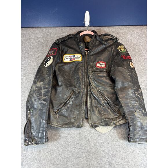 Vtg 70s Bermons Leather Expert Moto Biker Full Up Jacket Mens 42 Punk Patches