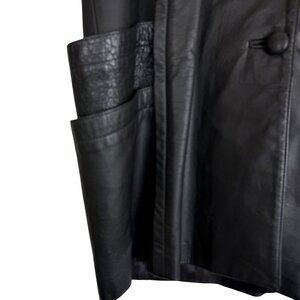 Vtg 70s Black Leather Coat XL Croc Embossed Trim Leathers by New England USA