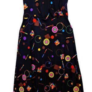 Vtg 70s Black Pink Geometric Halter Maxi Dress 2