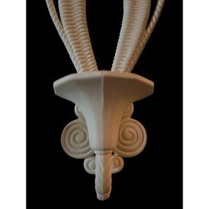 Vtg 70s Burwood Faux Off-White Wicker Wall Candleholders 17" Tall Pair