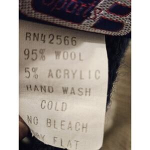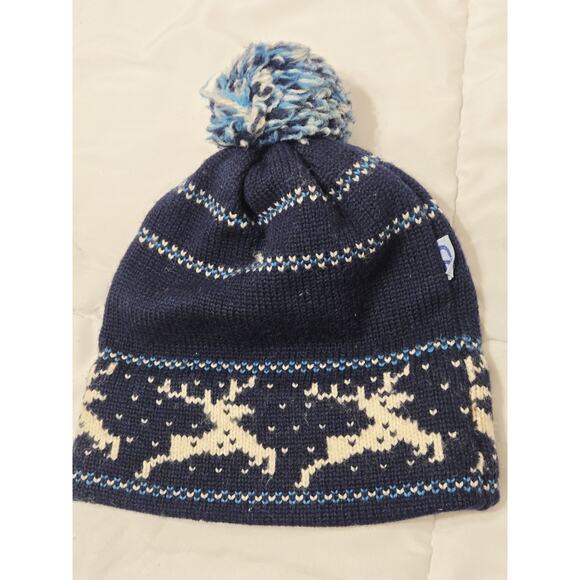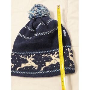 Vtg 70's CB Sports Reindeer Knit Wool Winter Gear Hat Ski Beanie Blue Pom Pom L