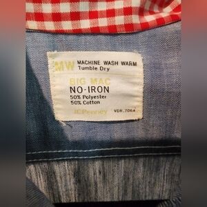 Vintage Big Mac JC Penny's chambray denim button down shirt with gingham, ric rac, Patchwork flowers and butterfly