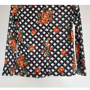 Vtg 70's Colorful Floral Geo Patterned Button Up Shirt Dagger Collar Sz 36 Retro