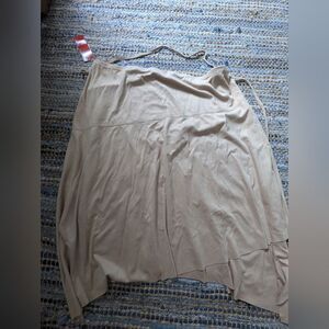 Vtg 70s Faux Suede Handkerchief Skirt Tan 3X Beaded Tie Front Asymmetrical Retro