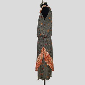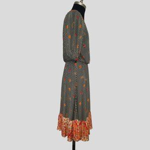 Vtg 70s French Boho Asymmetrical Frill Dress M