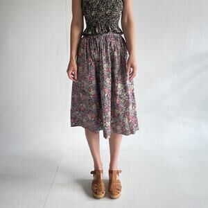 Vtg 70's Full Pleated Floral Midi Skirt Sz 16 CENTURY OF BOSTON Cottagecore