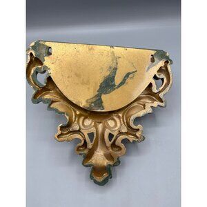 Vtg 70s Gold Tone Wall Pocket Planter Decor Hollywood Regency