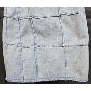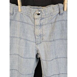These vintage 1970s estate find patchwork denim flared pants feature a light wash and a unique stitched grid pattern, offering a stylish and retro vibe.