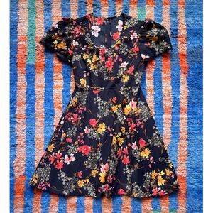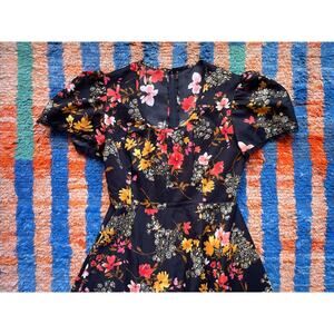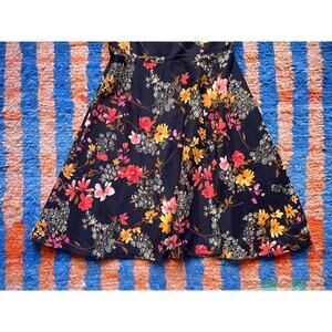 Vtg 70's Handmade Dark Floral Flared Midi Dress Flutter Sleeves Plus Sz L/XL