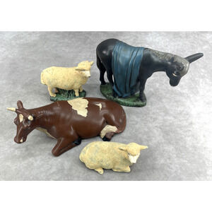 Vtg 70s Holland Mold Ceramic Nativity Animals Set Cow Donkey Sheep Hand Painted