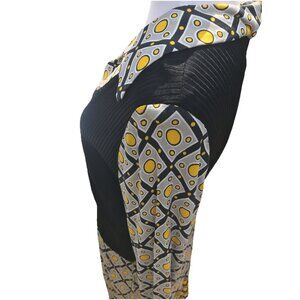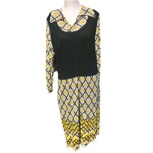 Vtg 70s Htf Montgomery Ward Maxi Knit Polly Dress Abstract Geo Black Yellow S M