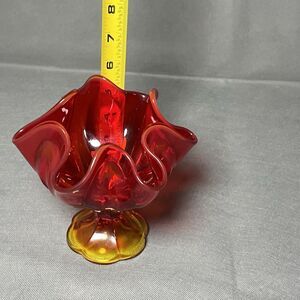 Vtg 70s L E Smith Amberina Glass Footed Pedestal Bowl Handkerchief 6 Finger Vase