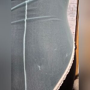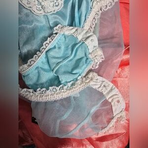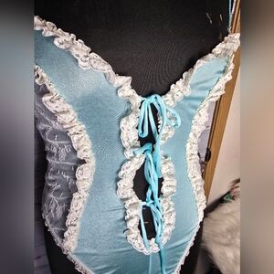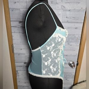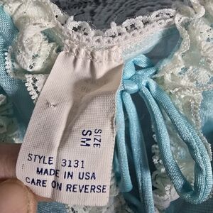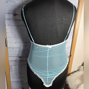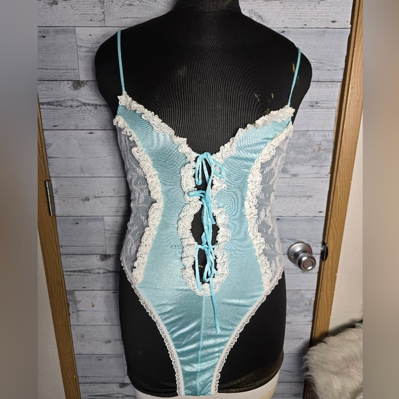 Vtg 70s Lace Trimmed Aqua Teal Nylon Lingerie Teddy Negligee Bodysuit