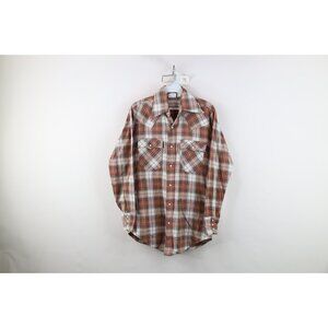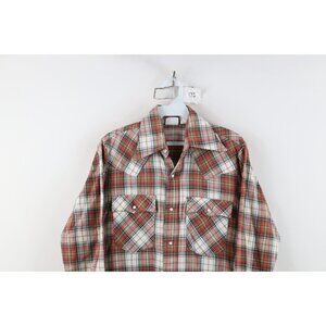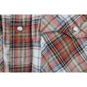 Vtg 70s Levis Mens S Faded Western Cowboy Flannel Snap Button Shirt Plaid USA