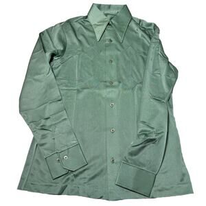 Vtg 70s Men’s Arnel Nylon Dress Shirt Long Sleeves Button Up Green Size M NWOT