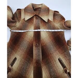Vtg 70s Miss Gallery Women's S/M Brown & Tan Plaid Retro Wool Trench Coat w/Belt