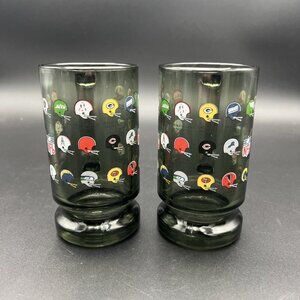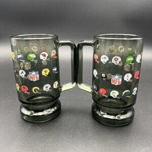 Vtg 70s NFL Smoked Glass Team Helmets Beer Mugs Set Of 2