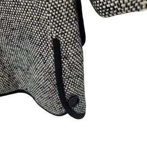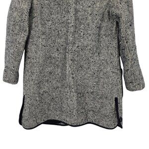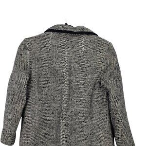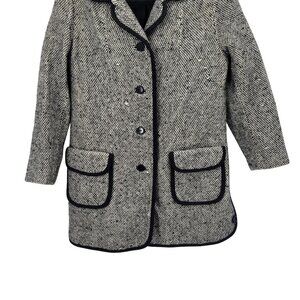 Vtg 70s Petite Tweed Long Line Coat Sz PS Black White Contrast Trim Twee Winter