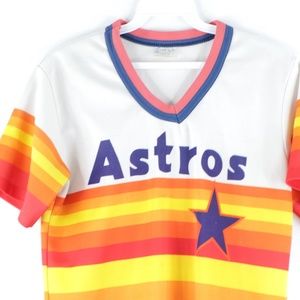 Vintage 70s Pro Knit Mens Small Houston Astros Striped V-Neck Baseball Jersey USA