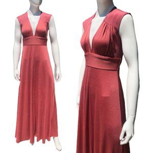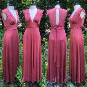 Vintage 1970s Puce/Tawny Rose Belted Long Slinky Grecian Draped Disco Dress by Judy Caliendo for Together New York