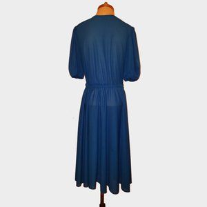Vtg 70s Puff Sleeve Pleated Top Waist Tie Dress 16