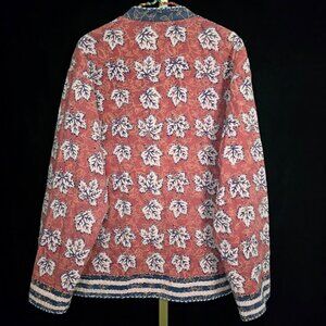 Excellent pre-loved condition. Boho and lovely! No size or care tags so please read measurements carefully. I myself wear an XL in jackets and this is very roomy on me. So if I had to guess, I's say a 1X.