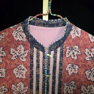 Vtg 70s Reversible Indian Cotton Toggle Jacket/Coat with Leaf Print