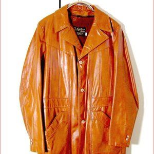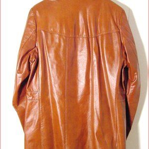 Vtg 70's Sears Leather Shop Fuzzy Lined Button Brown Leather Jacket Sz 44 Tall