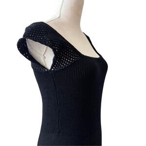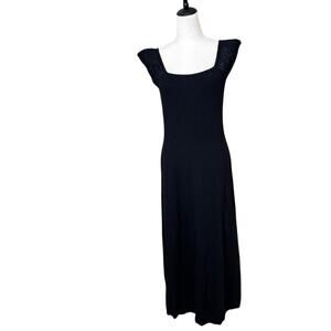 Vtg 70s St. John Knits Black Knit Midi Maxi Dress Square Neck Ruffle Sleeve S