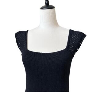 • Unique ruffle cap sleeves with a textured, open knit design.