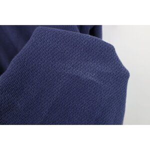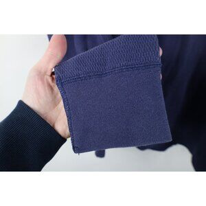 Blemishes front, back, left side. Loose thread bottom hem, collar. Shoulders stretched. Color faded. Pilling. Sun faded. Made in USA