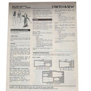 Vtg 70s Stretch & Sew Sew Pattern1505 Dress Blouse/ 700 Pants Shorts Bust UNCUT