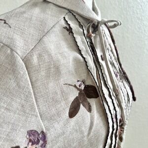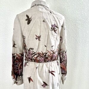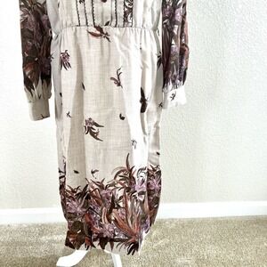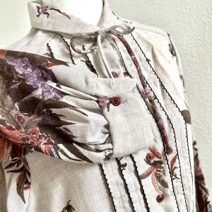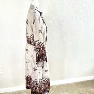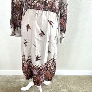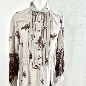 Vtg 70’s Sunshine Alley Brown Beige Floral Bird Print Dress Sz 16 With Tie Neck