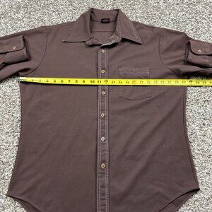 Vtg 70s Sutton Knits Dark Brown Long Sleeve Button Down Shirt L Rainbow Threads