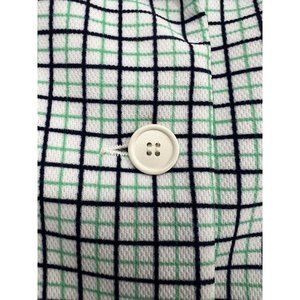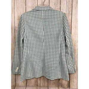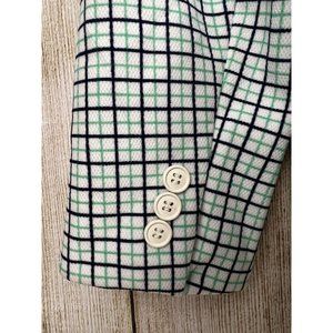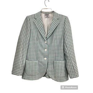 Vintage 70s Women Plaid Jacket Tag Sz 12 Blue Green Polyester Double Knit Mod Retro