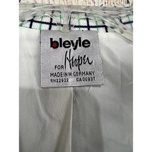 Details: 3-button closure; 2 front pockets; white buttons; 100% double knit polyester; made in Germany