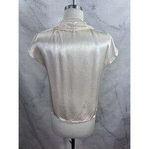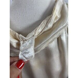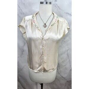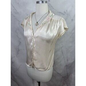 Vtg 70s You Babes Satin Button up Blouse S Cream Embroidery Collar Top Coquette