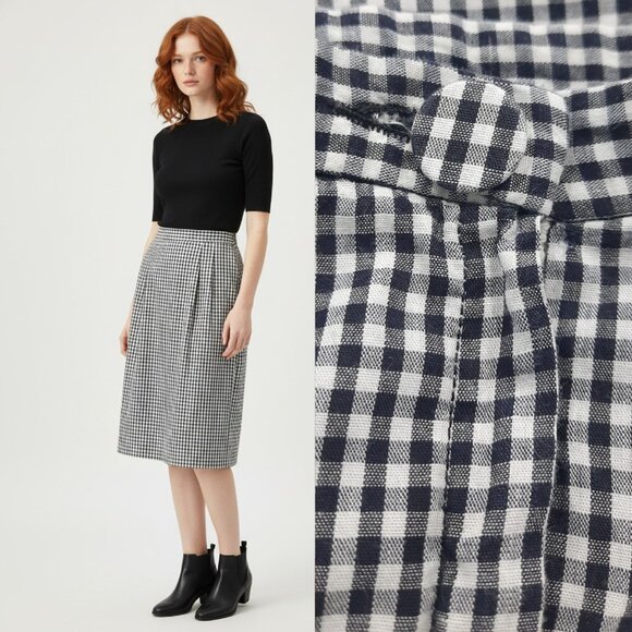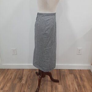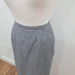 Vintage early 1970s era navy blue and white mini check pattern midi length skirt made by hand.