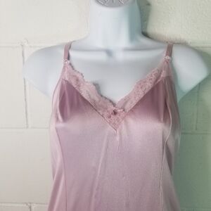 Vtg 70s nylon lilac pink long slip dress lingerie