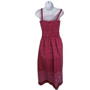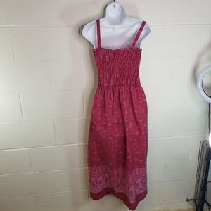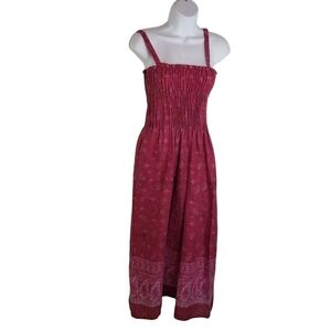 Vtg 70s smocked sleeveless boho floral print cotton sundress