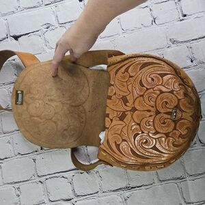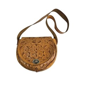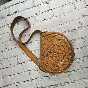 Vtg 70s tooled heavy stitched leather boho hippie festival bag purse