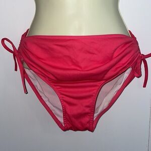 Bikini bottoms have gathered sides with bows