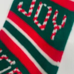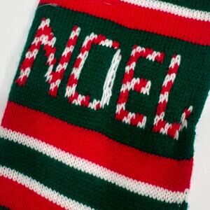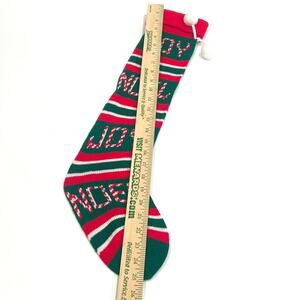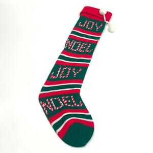 Vtg 80s 90s Acrylic Knit Christmas Stocking Joy Noel Words 24" red green FLAW