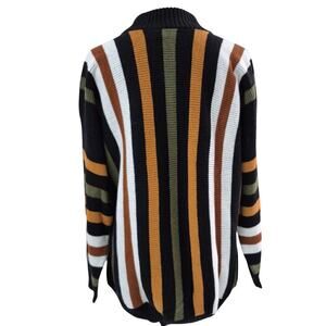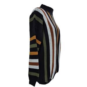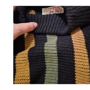 Vtg NWOT 80s 90s Clifton Place Knits Ltd Striped Sweater Blk/Org/Cream/Gr/Brown in acrylic, Appears never worn, with no holes, snags, stains or smells; definitely Unisex.