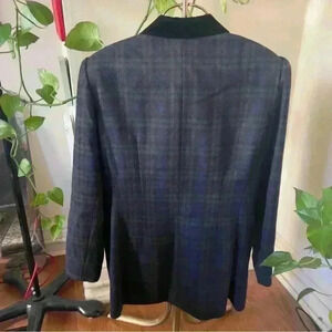 Vtg 80s 90s David N Blackwatch Plaid Wool And Velvet Blazer - Size 14