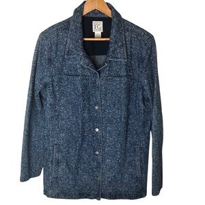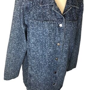 Vtg 80's 90's Field Gear Denim Jacket Sz XL Cotton Long Abstract Floral Print