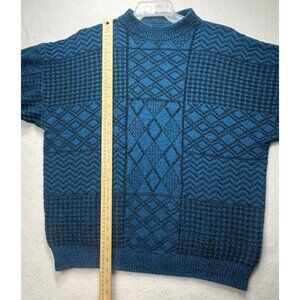 Vtg 80s 90s Grandpa Knit Sweater Patchwork Geometric Cosby Men's Sz L Blue Black